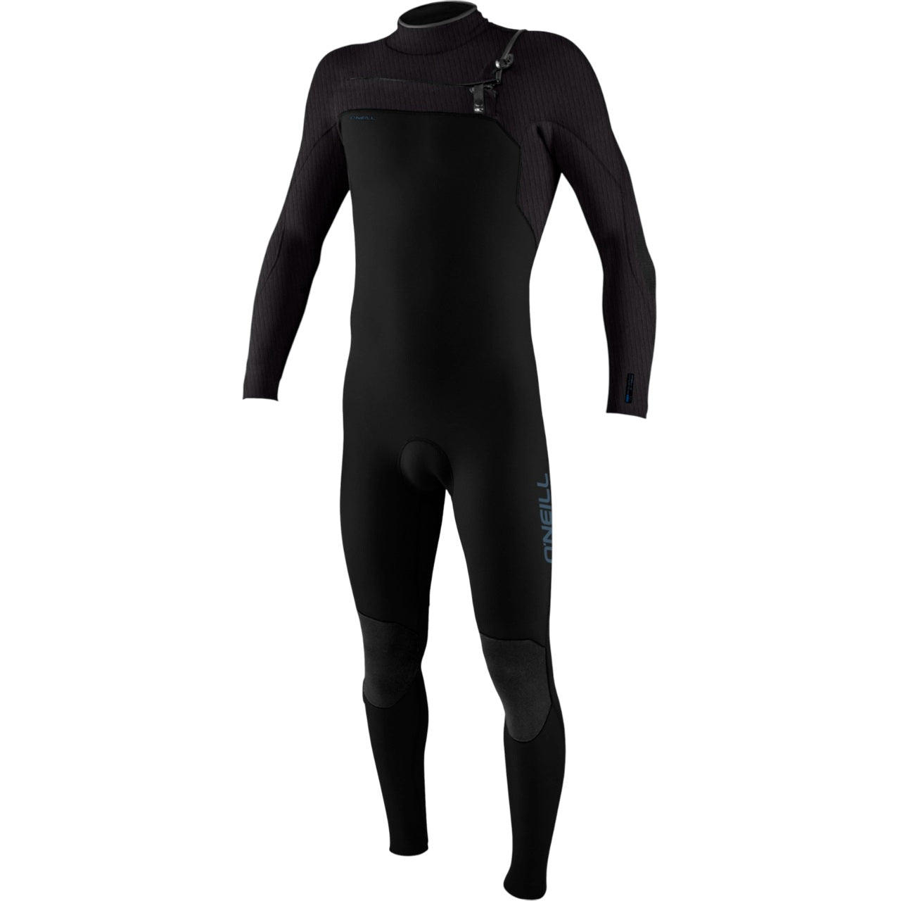 O sistema de fecho no peito F.U.Z.E. garante um ajuste eficaz e seguro, com design de costuras minimalista para maximizar a elasticidade e minimizar pontos de entrada de água. O design inclui uma barreira de 360º com orifícios de drenagem e costuras totalmente seladas com fita em Recycled TB3X, assegurando durabilidade e proteção adicional. Os braços e ombros utilizam TechnoButter 3X pré-esticado para maior mobilidade, enquanto o corpo e as pernas são reforçados com 0,5 mm extra de isolamento, otimizando o calor sem comprometer o desempenho. A laminação com base em água Aqua Alpha isenta de solventes reflete o compromisso da O’neill com práticas sustentáveis.